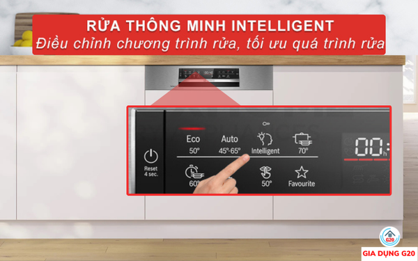 Với Intelligent, máy sẽ điều chỉnh quá trình rửa bát. Sau khi chương trình kết thúc, người dùng có thể đáng giá kết quả làm sạch và làm khô hoặc thời lượng của chương trình thông qua dụng Home Connect. Sau đó, máy rửa chén sẽ tự động điều chỉnh các cài đặt và cung cấp một số lựa chọn thay thế cho người dùng. Chương trình còn cung cấp thêm về lượng tiêu thụ điện nước đã sử dụng.