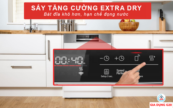 Sấy tăng cường Extra Dry cho bát đĩa khô hơn