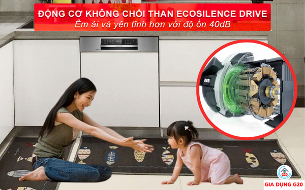 Ngoài ra, máy rửa chén được tăng cường thêm Silence Pro làm cho máy rửa chén cực kì yên tĩnh, giúp cho quá trình rửa chén đang diễn ra sẽ không tạo tiếng ồn quá lớn gây ảnh hưởng đến bạn. Giúp bạn yên tâm hơn mỗi khi sử dụng.