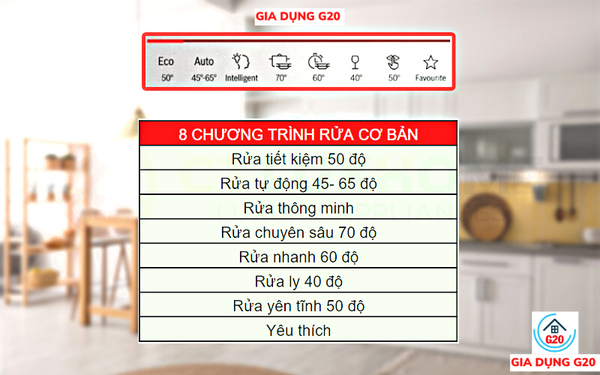 Tùy chọn 8 chương trình rửa cơ bản theo từng nhu cầu sử dụng