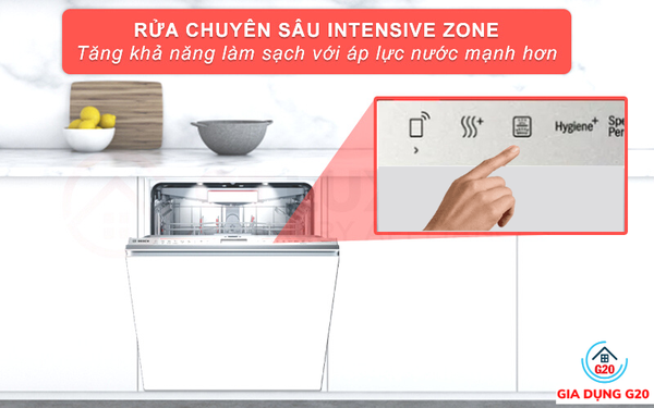 Hỗ trợ đánh bay vết dầu mỡ cứng đầu vì chức năng Intensive Zone sử dụng lực nước mạnh ở nhiệt độ cao để tẩy rửa. Điều này giúp nồi chảo hoặc những bát đĩa siêu bẩn ở giàn dưới cùng được làm sạch trong điều kiện tối ưu hơn.