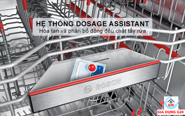 Với tính năng hòa tan và điều phối lượng chất tẩy rửa theo lượng bát đĩa trong giàn, hệ thống Dosage Assistant giúp máy hoạt động thông minh.