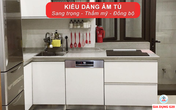 Kiểu dáng âm tủ sang trọng, thiết kế đồng bộ gian bếp