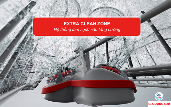Nhờ Extra Clean Zone mà bát đĩa được làm sạch với lượng nước nhiều hơn mà không cần tốn thêm nhiều chất tẩy rửa. Ngoài ra, bạn có thể tắt bật thông qua công tắc ON/ OFF ngay trên hệ thống vòi phun.