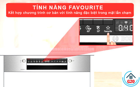 Khai thác tối đa sức mạnh của máy rửa bát và giúp cuộc sống hàng ngày của bạn dễ dàng hơn. Với chức năng yêu thích, bạn có thể dễ dàng thiết lập cấu hình chương trình được sử dụng thường xuyên nhất. Cấu hình này có thể được khởi động thông qua ứng dụng Home Connect hoặc trực tiếp trên màn hình máy rửa bát của bạn. Ví dụ: kết hợp tùy chọn Extra Dry với chương trình Eco 50°C và khởi động máy rửa bát chỉ với một lần nhấn.