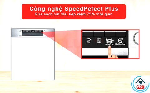 Với tính năng đặt biệt Speed Perfect Plus trên máy rửa bát Bosch SMI6ZCS07E sẽ rửa đầy tải trong thời gian ngắn hơn. Thời gian xả giảm tới 66% mà vẫn đạt hiêu quả cao nhất.