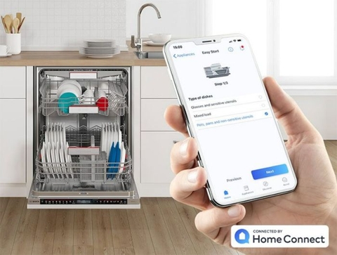 Chờ đợi cho đến khi máy rửa bát hoàn thành xong việc rất mất thời gian. Đặc biệt là khi bạn có một lịch trình bận rộn. Với Home Connect, giờ đây bạn luôn có thể sắp xếp thời gian của mình một cách tối ưu. Nếu muốn, bạn có thể gửi thông báo từ máy rửa bát đến điện thoại thông minh hoặc máy tính bảng của mình một cách thuận tiện. Vì vậy, bạn luôn biết chính xác máy rửa bát của bạn rửa là bao lâu và nhận thêm thông tin hữu ích. Thực hiện đa nhiệm dễ dàng – dù ở nhà hay đang di chuyển.