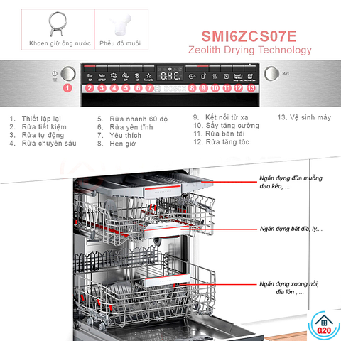 + Tính năng bổ sung: Home Connect, tăng tốc, vùng rửa mạnh, sấy thêm, Rửa bán tải