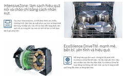 Tùy chọn IntensivZone đảm bảo áp lực phun đặc biệt mạnh và tăng nhiệt độ làm sạch trong toàn bộ giỏ dưới. Bằng cách này, xoong và chảo bị bẩn hoàn toàn sạch sẽ, trong khi các vật dụng nhạy cảm cũng có thể được đặt vào giỏ phía trên.