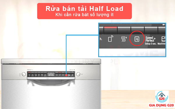 Tuy nhiên, rửa nửa tải không đồng nghĩa với việc tiết kiệm một nửa lượng điện nước cần dùng. Chức năng này chỉ sử dụng ít năng lượng hơn so với thông thường. Vì thế hãy kích hoạt rửa Half Load khi cần rửa bát số lượng ít.