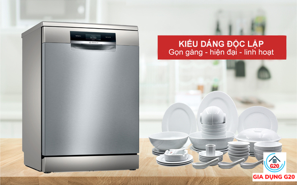 Máy rửa chén bát Bosch SMS8YCI03E serie 8 thiết kế độc lập chắn chắn, linh hoạt trong việc lắp đặt (có thể để ngoài hoặc đẩy âm tủ).