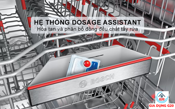 Hệ thống Dosage Assistant được thiết kế ở đầu giàn giữa, hệ thống hỗ trợ hòa tan chất tẩy rửa sau đó phân bổ đều khắp khoang máy. Từ đó tiết kiệm tối ưu lượng chất tẩy rửa cần dùng.