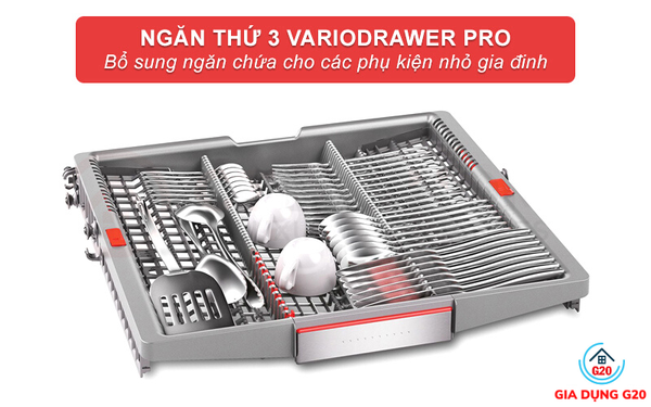 Ngoài ra, máy còn có giàn thứ 3 VarioDrawer Pro để đựng các vật dụng nhỏ như: thìa, muỗng, đũa hoặc chén nước chấm nhỏ.