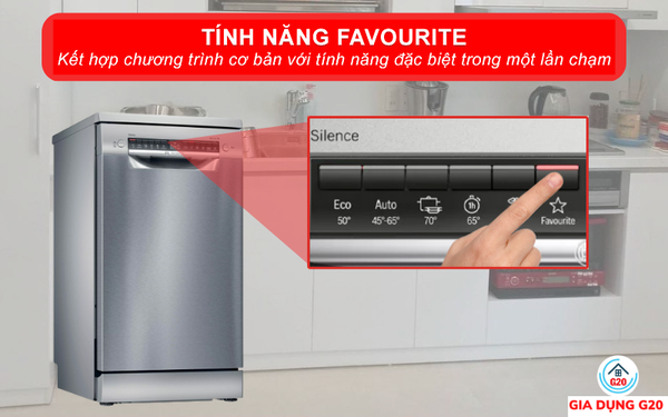 Tính năng Favourite giúp công việc hằng ngày trở nên dễ dàng và tận dụng tối đa công dụng mà máy rửa bát mang lại.