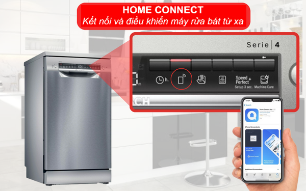 Máy rửa chén Bosch 45cm SPS4EMI60E được trang bị công nghệ Home Connect với các chức năng như: