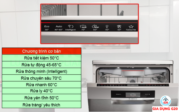 Bosch SMS8TCI01E Serie 8 được tích hợp 8 chương trình cơ bản đáp ứng được nhu cầu mà bạn mong muốn: