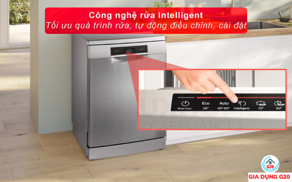 Với Intelligent, máy sẽ điều chỉnh quá trình rửa bát. Sau khi chương trình kết thúc, người dùng có thể đáng giá kết quả làm sạch và làm khô hoặc thời lượng của chương trình thông qua dụng Home Connect. Sau đó, máy rửa chén sẽ tự động điều chỉnh các cài đặt và cung cấp một số lựa chọn thay thế cho người dùng. Chương trình còn cung cấp thêm về lượng tiêu thụ điện nước đã sử dụng.