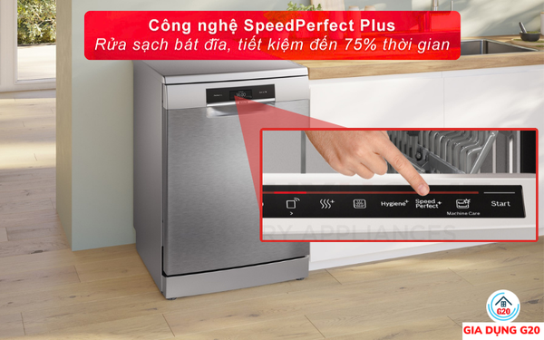 Bữa tiệc sắp tới của gia đình bạn đang gặp phải vấn đề do không đủ bát đĩa để phục vụ mà thời gian rửa lại không đủ? Đã có SpeedPerfect Plus giúp bạn giải quyết vấn đề này mà kết quả vẫn như rửa các tính năng thông thường. Tính năng này rút ngắn thời gian rửa so với thông thường giúp bạn tiết kiệm được thời gian hơn.