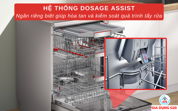 Hệ thống Dosage Assistant có khả năng phân tích được lượng chất tẩy rửa cần thiết với lượng bát đĩa mức độ bẩn thông qua cảm biến đo lường bên trong khoang rửa.