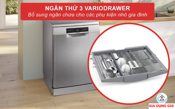 Ngăn chứa thứ 3 VarioDrawer Pro là nơi phù hợp nhất để sắp xếp các dụng cụ như thìa, muỗng, dao, kéo , hay cả tách trà ,tách cà phê,...