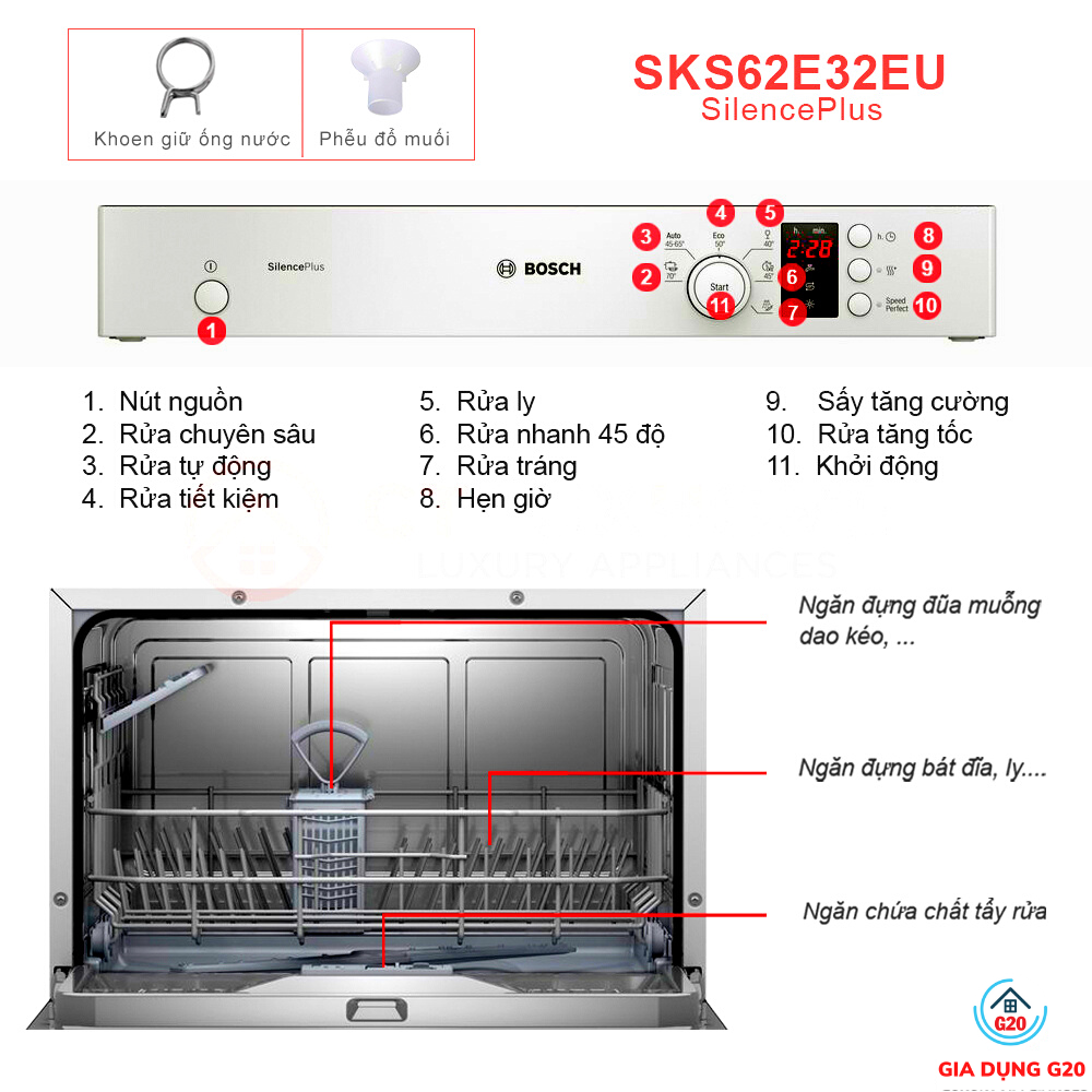 Thông số kỹ thuật chi tiết Máy rửa bát mini để bàn Bosch SKS62E32EU