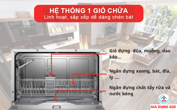 Hệ thống 1 giỏ chứa linh hoạt, sắp xếp dễ dàng chén bát