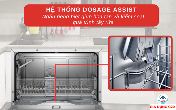Lượng chất tẩy rửa quá lớn sẽ khiến chúng không được rửa trôi hoàn toàn, có thể bám lại trên bề mặt bát đĩa. Để hạn chế tình trạng này, các nhà sản xuất đã tích hợp hệ thống Dosage Assistant trong máy.