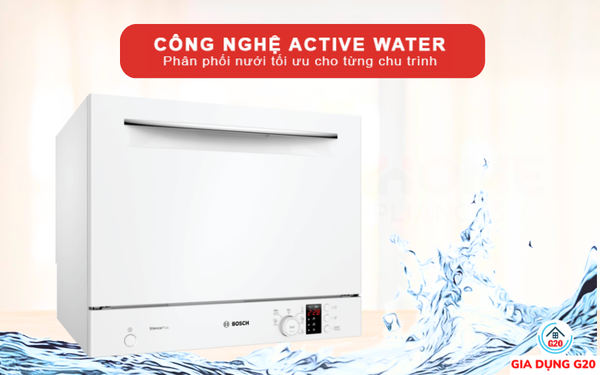 Công nghệ ActiveWater trong máy rửa bát Bosch SKS62E32EU giúp sử dụng nước hiệu quả. ActiveWater sẽ cảm biến số lượng bát đĩa trong khoang rửa và phân bổ nước tới vòi phun. Đặc biệt, công nghệ này sẽ thực hiện lọc nước và cảm biến mức độ bẩn của nước. Nếu có thể tái sử dụng nó sẽ dùng cho lần rửa sau.