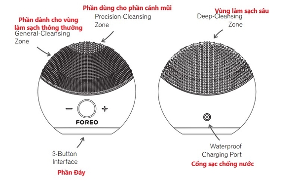 Máy có khả năng chịu nước! Tiếp xúc nước, sữa rửa mặt, tinh chất thoải mái. Với dòng máy này bạn có thể vô tư nhúng nước ngay cả khi lỗ sạc pin ở phía lưng máy cũng không hề có nút đậy, đủ thấy thương hiệu Foreo tự tin như thế nào với khả năng chịu nước của dòng Luna Mini 2.