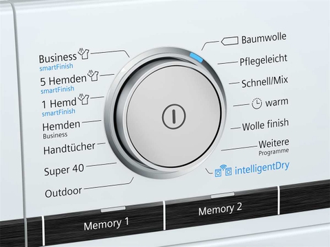 Với intelligentDry bạn không còn phải lo lắng về việc phải lựa chọn chương trình sấy phù hợp. Máy sấy quần áo và máy giặt của bạn sẽ chọn cài đặt lý tưởng cho bạn. Máy giặt được nối mạng sẽ gửi tất cả thông tin liên quan từ chương trình giặt cuối cùng, chẳng hạn như kích thước tải và mức độ ẩm, trực tiếp đến máy sấy thông qua Home Connect. Do vậy chương trình được phối hợp hoàn hảo và tính toán chính xác thời gian sấy dự kiến.