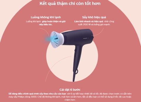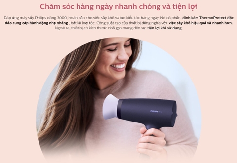 - Máy sấy tóc Philips có chế độ sấy bảo vệ tóc