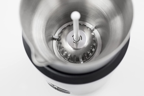 Để sô cô la tan chảy không dính vào máy đánh trứng, một cái rổ được dùng để bảo vệ trên ngăn chứa máy đánh trứng. Hộp đựng bằng thép không gỉ được làm nóng bằng cảm ứng và máy đánh trứng sẽ tạo bọt sữa.