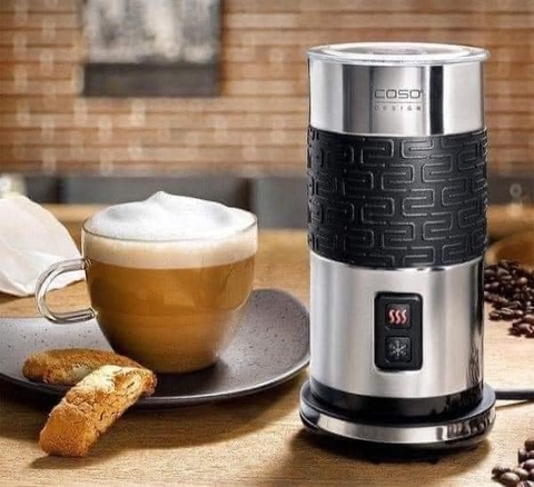 - Máy tạo bọt sữa Caso được thiết kế với đường nét vô cùng tinh tế kết hợp những đường nét hoa văn cách nhiệt.. Máy được hoàn thiện bằng chất liệu thép không gỉ sạch sẽ, tay cầm cách nhiệt tiện lợi, cứng cáp. Phần nắp của máy thiết kế xoay 360° và trong suốt. Lớp chống dính kép của máy nhằm mục đích tránh tình trạng sữa bị cháy khét khi pha chế.