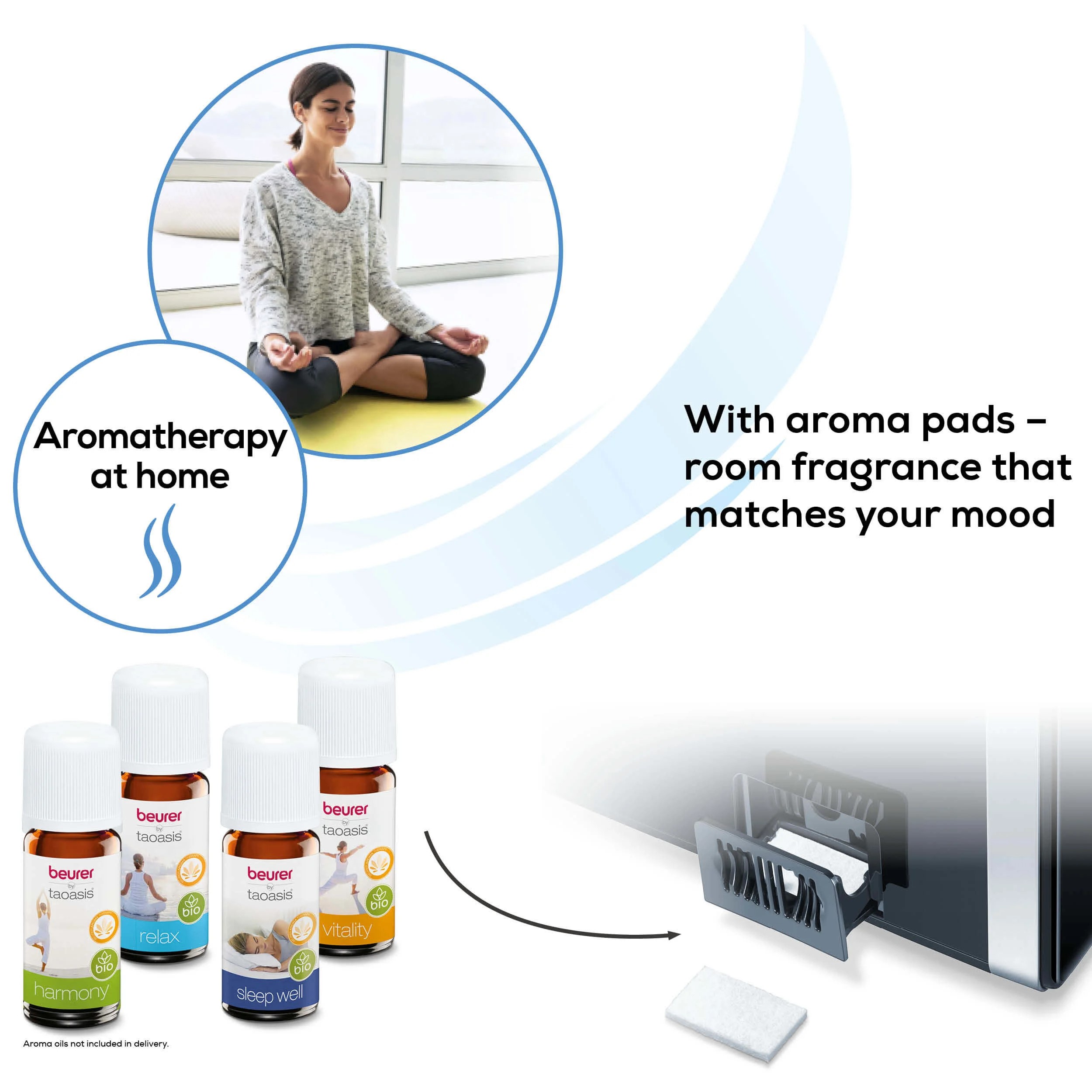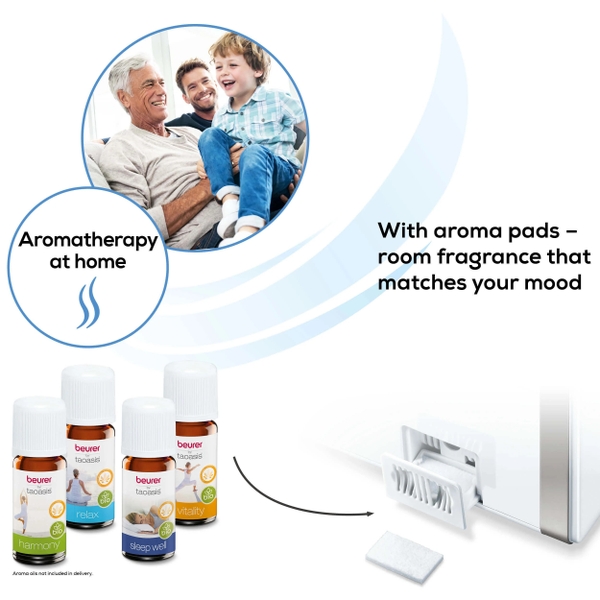 Nếu muốn, bạn có thể thêm vài giọt hương liệu/ dầu thơm vào miếng đệm trong ngăn chứa hương liệu. Máy tạo độ ẩm Beurer LB 88 đi kèm với 15 miếng đệm thơm để sử dụng.