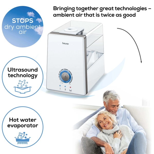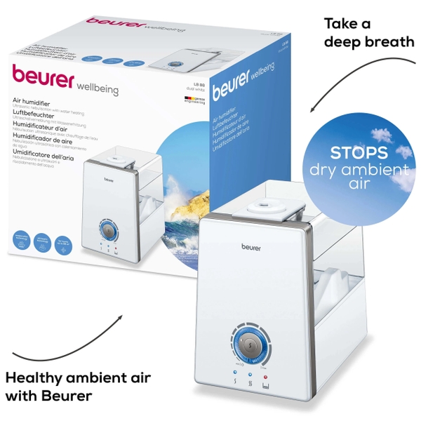 Máy tạo độ ẩm hay còn gọi là máy cân bằng ẩm, thiết bị cần thiết cho mùa hanh khô. Beurer LB 88 giúp không khí có độ ẩm cân bằng tránh các hiện tượng khô da, khô mũi… do không khí quá khô.