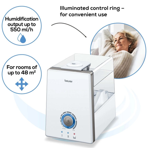 Máy tạo độ ẩm Beurer LB88 được sử dụng cho căn phòng lên đến hơn 48m2