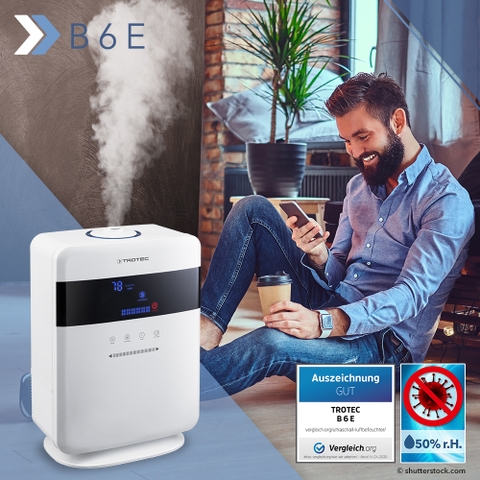 - Thở tự do! Máy tạo độ ẩm thiết kế B 6 E hoạt động êm ái cung cấp cho khu vực sống của bạn không khí thở được làm ẩm tối ưu chỉ bằng một nút bấm. Điều này có thể giúp ngăn ngừa cảm lạnh, kích ứng mắt hoặc khô da. Bộ tạo ion có thể chuyển đổi tùy chọn loại bỏ phấn hoa, bụi, vi rút và vi khuẩn khỏi không khí trong phòng một cách đáng tin cậy.