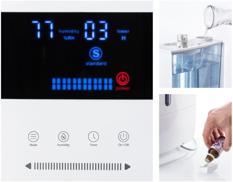 - Chức năng hẹn giờ được lập trình tự do để tự động tắt thiết bị và chế độ ban đêm để hỗ trợ giấc ngủ ngon, hoàn thành các chương trình đa dạng của máy tạo ẩm siêu âm.