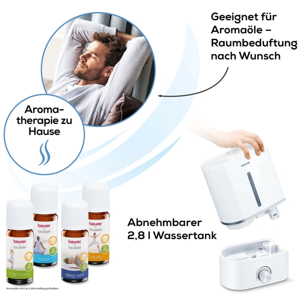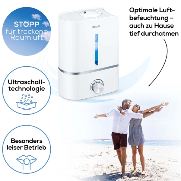 Con người dành phần lớn thời gian ở trong nhà và môi trường lý tưởng nhất cho con người là môi trường có độ ẩm từ 40% đến 60%. Chỉ số này thường không đạt được đặc biệt là vào mùa khô. Không khí khô này hút ẩm, làm khô các mảng nhày, da và thậm chí cả đồ nội thất. Chính vì thế, nhãn hàng Beurer đã cho ra đời máy tạo độ ẩm không khí LB 45, giúp làm ẩm, giữ vệ sinh, loại bỏ mùi và vi khuẩn cho khu vực sinh hoạt và làm việc cá nhân.