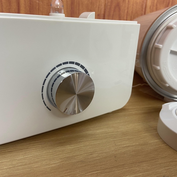 - Thiết kế núm xoay vô cấp mạ crôm dễ dàng điều chỉnh cho hiệu suất làm ẩm lên đến 300ml/h, cung cấp đủ độ ẩm cho không gian phòng có diện tích lên tới 30m2 trong những ngày khô hanh khó chịu.