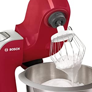 Ngoài những đặc tính nổi bật ở trên, Máy Trộn Bột Đa Năng Bosch MUM58720 còn được trang bị thêm bộ Patisserie với các thiết bị: máy đánh trứng, que đánh trứng. Đây là những thiết bị giúp bạn có thể dể dàng chuẩn bị các hỗn hợp bánh mịn, kem để tạo nên những chiếc bánh ngọt tuyệt vời như: Bánh Gato, Bánh Pie, Bánh Tart, Bánh Pudding, Bánh Crepe, Bánh Su Kem…