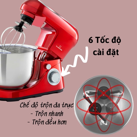 Đặc điểm nổi bật của máy trộn bột Klarstein Bella Pico 2G 1200W Màu Đỏ
