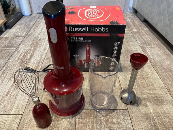 Máy Xay Cầm Tay 3 Trong 1 Russell Hobbs Desire 24700-56 là bộ sản phẩm vô cùng tuyệt với các chị em nội trợ, đặc biệt là những người nội trợ chưa được khéo tay lắm. Với kết cấu nhỏ gọn, công suất tương đối mạnh, chỉ cần bỏ thực phẩm cần xay vào máy, ấn nhẹ vào nút bấm. Khi sở hữu bộ sản phẩm này thì việc băm, trộn, xay hay đánh trứng trở thành một nhiệm vụ đơn giản hơn bao giờ hết, các chị em nội trợ sẽ thoải mái làm các món ăn ngon như: nem, giò, kem trứng, thịt xay, súp rau củ, súp kem, sốt mayonnaise, salad, đồ xay nhuyễn, thức ăn trẻ em, daiquiris, kem và nhiều công thức nấu ăn khác nhau. Nhìn chung công dụng của bộ máy này rất nhiều, nếu bạn giỏi nấu nướng thì sẽ có thể tận dụng được hết tính năng của nó.