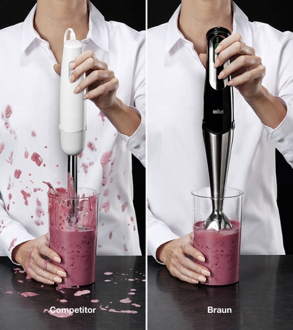 Tất cả các loại máy xay cầm tay của Braun đều được trang bị công nghệ SPLASHControl - Công nghệ chống văng hoàn hảo nhờ vào thiết kế đầu xay độc quyền hình chuông xoắn và lưỡi dao bên trong giúp thực phẩm bị hút vào khi xay, cho kết quả xay vừa nhuyễn vừa mịn mà không hề bị vung tóe, giữ gian bếp luôn sạch sẽ.