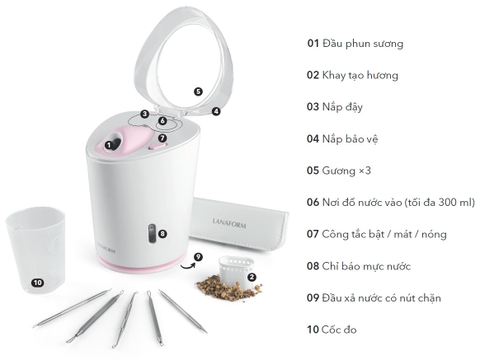 • Chức năng: xông mặt nóng và lạnh, khuếch tán hương liệu