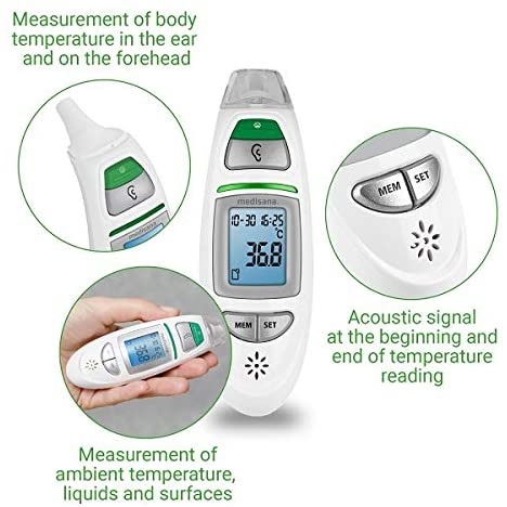 Nhiệt kế điện tử đo tai trán TM 750 đo thân nhiệt nhanh chóng, chính xác. Medisana đưa ra thị trường sản phẩm Nhiệt kế hồng ngoại đo tai trán TM 750, trán với công nghệ đo định vị cảm biến bằng đèn chỉ thị. Loại nhiệt kế này cho kết quả đo thân nhiệt độ chính xác cao, đo ở trán (thái dương), đo định vị tại nách, đo tại trực tràng chính xác cao và an toàn.