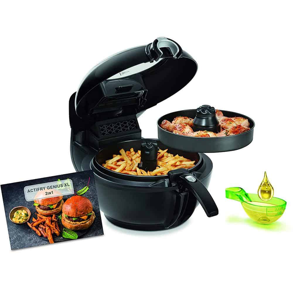 Nồi chiên không dầu 2 tầng Tefal YV9708 giúp bạn có thể chế biến tới 1,7kg các món ăn yêu thích của mình, giúp bạn chiên đồ ăn nhẹ giòn như khoai tây chiên hoặc gà nguyên con với lớp da giòn. Trong cuộc sống hiện đại ngày nay thì sở hữu Nồi chiên không dầu Tefal YV9708 để chế biến cho gia đình những bữa ăn bắt mắt không kém phần ngon miệng bổ dưỡng là điều cực kỳ quan trọng.