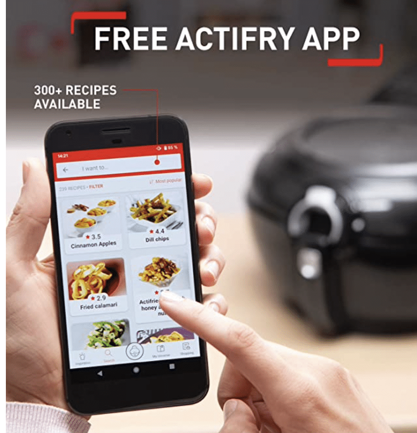 • Đặc biệt Nồi chiên không dầu Tefal YV9708 còn có đi kèm kèm với một cuốn sách gồm 20 công thức nấu ăn và ngoài ra, với ứng dụng di động ActiFry, bạn sẽ có thể truy cập hơn 300 công thức nấu ăn thoải mái cho bạn lựa chọn để chiêu đãi gia đình và bạn bè.