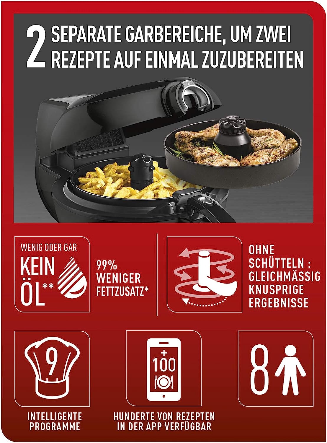 Bạn đang băn khoăn việc chuẩn bị một bữa ăn ngon và cân đối cho gia đình bạn?. Nồi chiên không dầu Tefal YV9708 sẽ giúp bạn giải quyết vấn đề ấy. Đây là nồi chiên không dầu duy nhất có thể nấu 2 món cùng 1 lúc. Tefal YV9708 được trang bị công nghệ chuyển động kép độc quyền, sự kết hợp độc đáo giữa không khí nóng và cánh khuấy tự động. Đảm bảo mang đến những món ăn lý tưởng với vỏ ngoài vàng giòn của thực phẩm chiên mà không cần dùng dầu hoặc cần rất ít dầu.