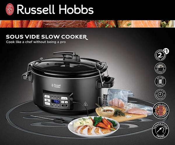 Nồi nấu đa năng Russell Hobbs gồm 3 chương trình nấu: Sous Vide (nấu ăn mà nguyên liệu sẽ được cho vào túi chuyên dụng và hút chân không), nấu chậm và nấu ăn với cảm biến nhiệt độ thông minh (ví dụ: để rang). Lý tưởng để nấu các món hầm, ninh, rang, có thể nấu cùng 1 lúc nhiều món với giá để các túi hút chân không.